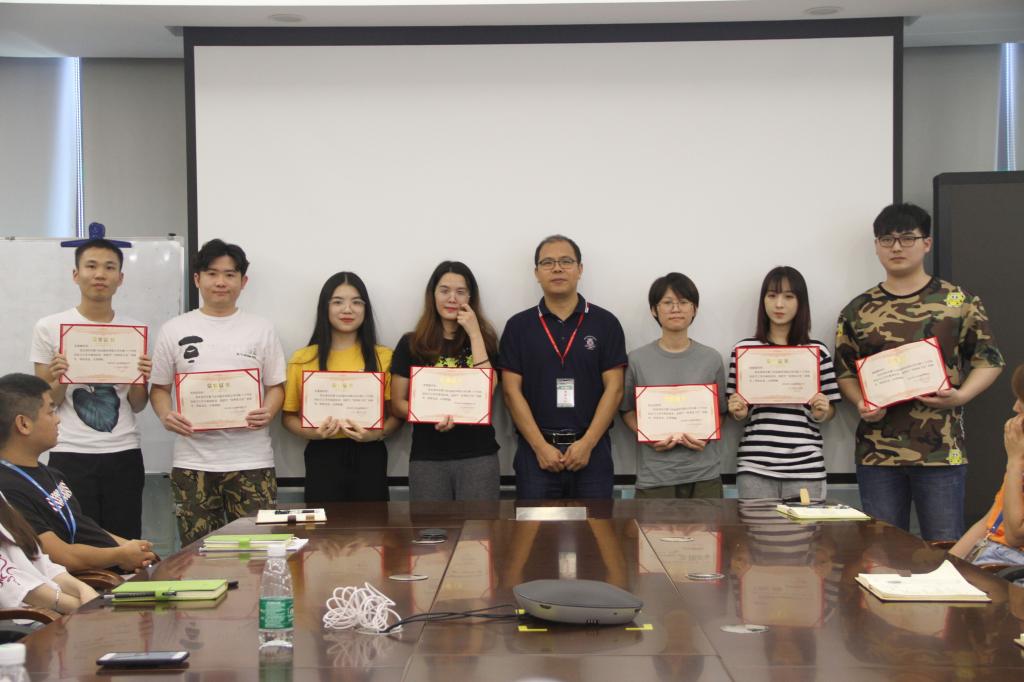 总结会上,聚飞光电徐总对此次22名学生顶岗实习情况进行了总结与回顾,对实习生的表现予以充分肯定,对留在聚飞光电就业的同学表示欢迎与祝贺。实习生优秀代表16光电技术3-2班刘小告等四名同学进行了总结汇报,介绍了各自的实习岗位和工作内容,分享了在专业知识、实操技能以及职业素养等方面的收获与提升。聚飞光电根据学生的顶岗实习表现评定出“优秀实习生”,由许志良院长为其颁发荣誉证书,表彰学生积极参与顶岗实习。同时许院长对同学们提出两点要求:一是要学会感恩,感恩聚飞光电和学院提供的实习机会与平台,感恩指导过自己的师傅与老师;二是要发扬工匠精神,在日后的工作岗位上脚踏实地、持之以恒,坚持把工作做到极致。