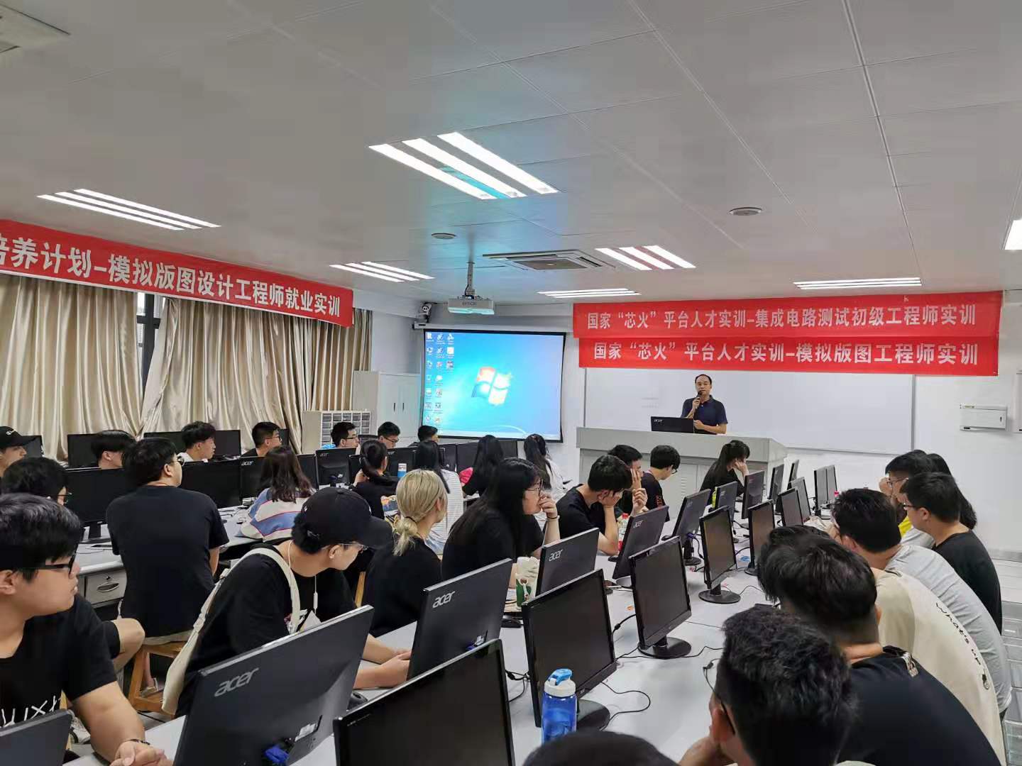 为进一步提升学生就业竞争力,9月1日,电子与通信学院在国家“芯火”平台人才实训基地启动“集成电路测试初级工程师实训”和“模拟版图工程师实训”,学院遴选的37名微电子技术专业学生参加本次实训。学院党总支书记刘小延、深圳市微纳集成电路与系统应用研究院经理刘永新分别致辞,学院副院长管明祥、摩尔精英VP总经理赖琳晖、深圳集成电路测试验证技术中心经理陈田等参加了典礼。典礼由学院副院长姜俊侠主持。