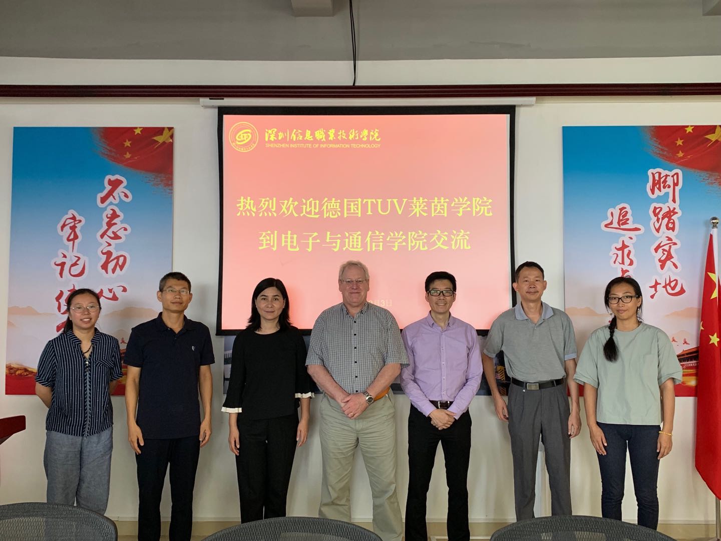 9月3日,德国TUV莱茵学院大中华区副总裁程亘卉率领莱茵学院项目经理及德国技术专家来我校电子与通信学院访问。电信学院管明祥副院长,物联网应用技术专业、移动通信技术专业及通信技术专业负责人,向到访客人详细介绍了电信学院物联网专业群课程建设、实训室基地以及人才培养模式等情况。