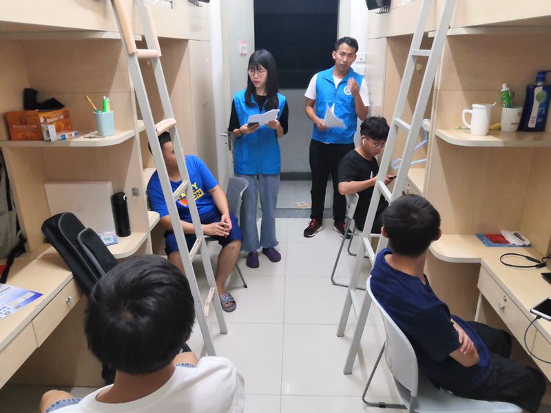 自律会成员结合学校宿舍管理条例和实际情况,从学生公寓“安全三比”实施细则、三比违纪惩罚、文明宿舍评比、宿舍卫生与宿舍安全用电这五个方面的内容对每个19级新生宿舍进行宣讲。宣讲过程中,自律会成员通过举实际例子,解决新生关于宿舍三比的疑问,引导新生培养良好的住宿习惯,保持宿舍的整洁,营造安全、安静、整洁的宿舍环境。
