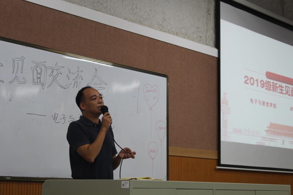 为增强电子与通信学院2019级第二批新生与学院老师的沟通与交流,同时让同学们更加深入了解学院的基本情况及专业方向,11月6日下午14:00在知行楼6-101阶梯教室举行电子与通信学院2019级第二批新生见面交流会。出席本次交流会的有电子与通信学院许志良院长、刘小延书记、管明祥副院长、姜俊侠副院长、电子信息工程中心教研室主任罗德安老师以及教研室教师代表、学生办主任明廷福老师,交流会由电子与通信学院辅导员向彩绫老师主持。