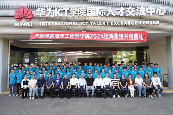 11月1日,我校联合深圳开鸿数字产业发展有限公司(简称“深开鸿”)举办第二届(2024级)“开源鸿蒙班”开班典礼。深开鸿解决方案总监于辰光、人才认证与产业服务总监郭斌,我校教务处副处长杨帆、信息与通信学院党政班子、专业教研室主任及获聘“开源鸿蒙特聘专家”的教师参加典礼。